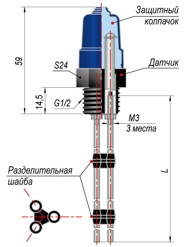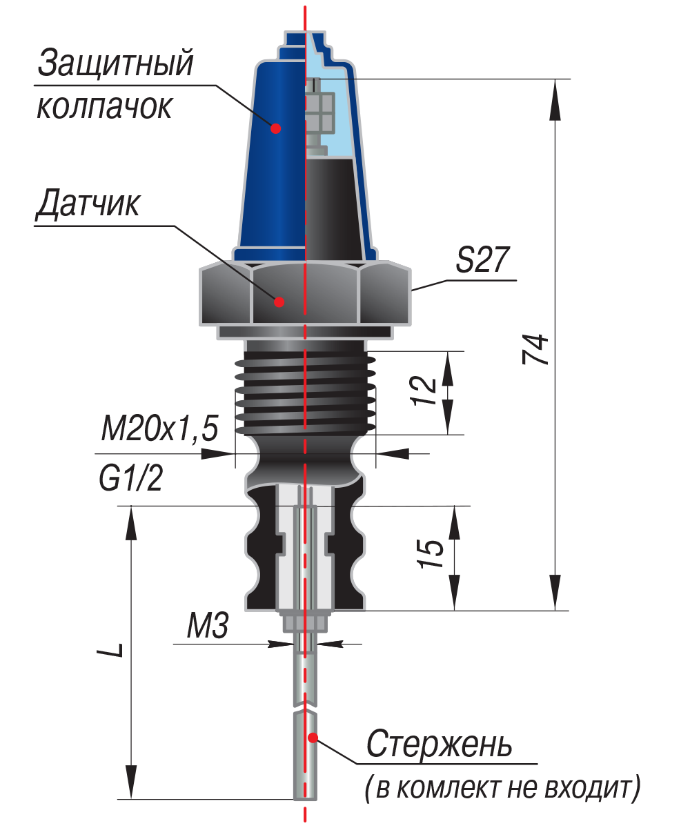 * Стержень не входит в комплект поставки датчика, он заказывается отдельно.