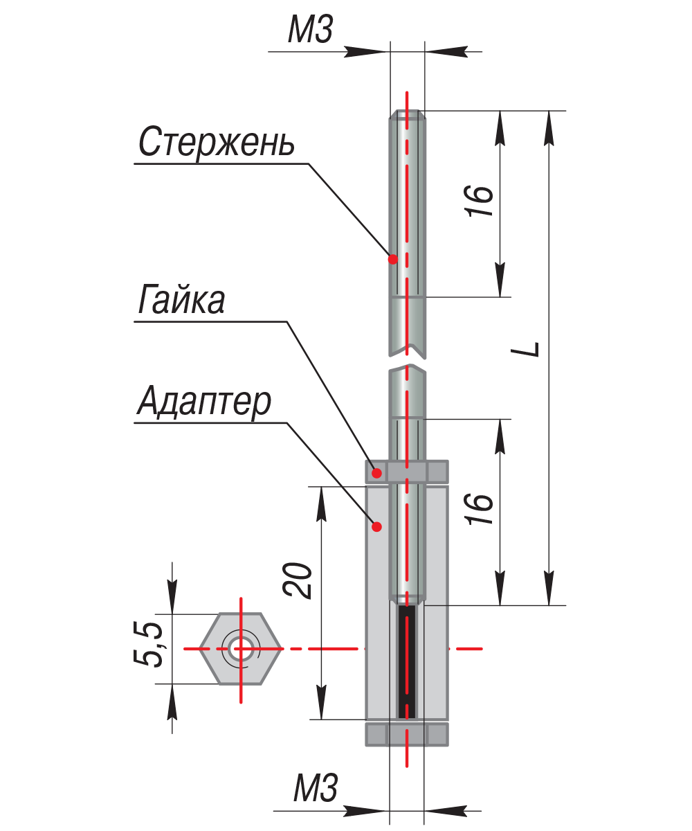 Стержни выпускаются в исполнениях: 0,5 / 1 / 1,95 / 1,95 с адаптером / 2,5 / 3 / 3,5 / 4 м.