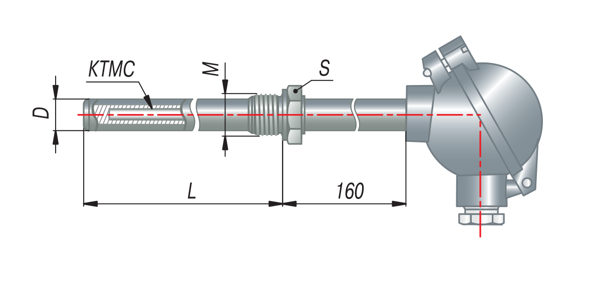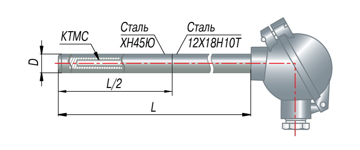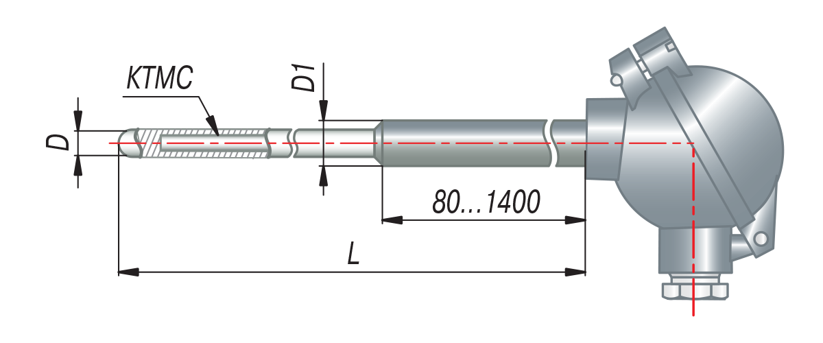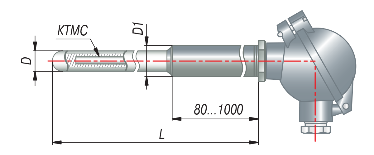 Конструктивные исполнения термопар на основе КТМС с коммутационной головкой с EXIA (модели ХХ5)