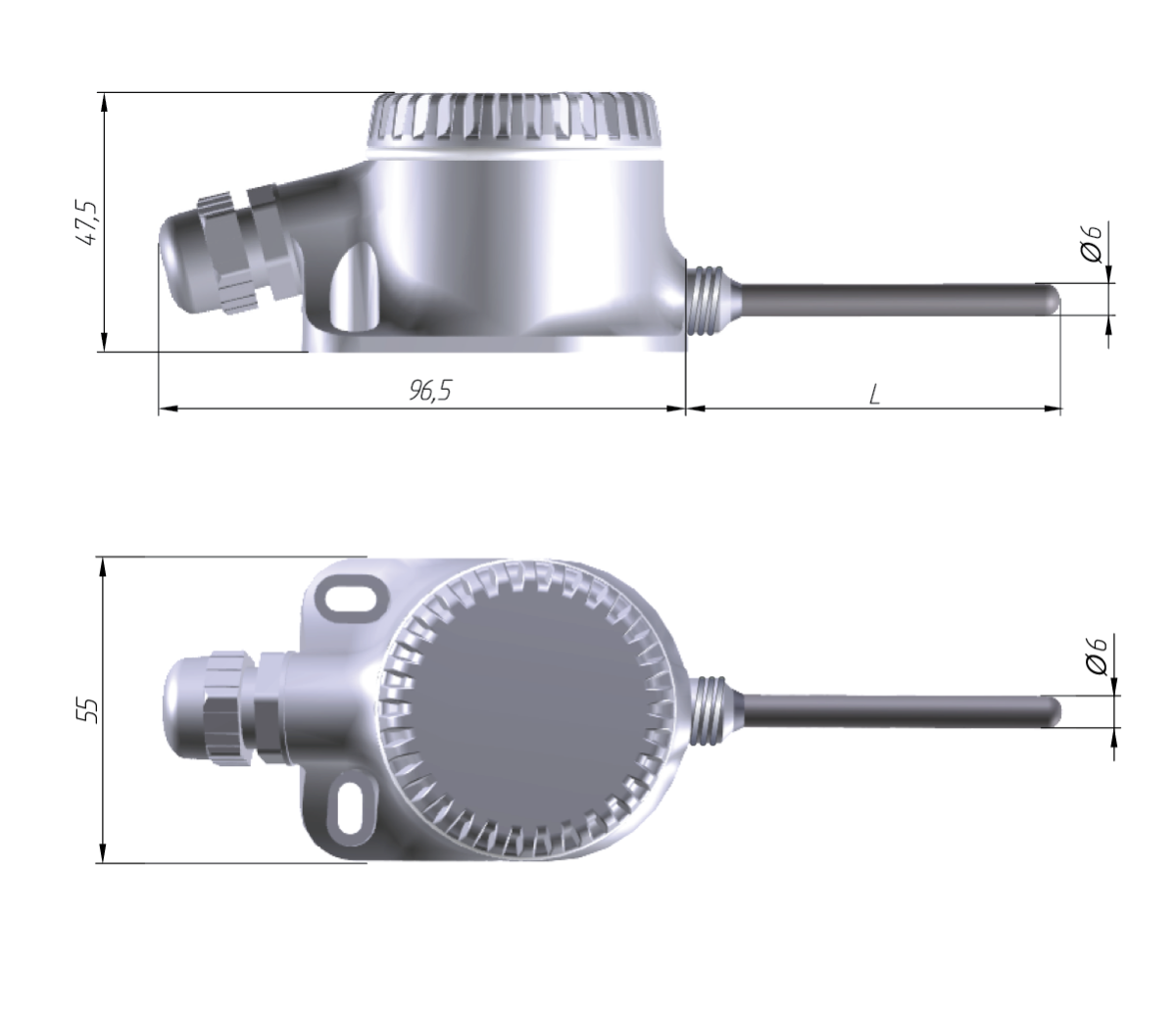 - ЭКРАН01 для датчика ДТС125Л, ДТС3125 и ДТС125М с длиной монтажной части 60 мм