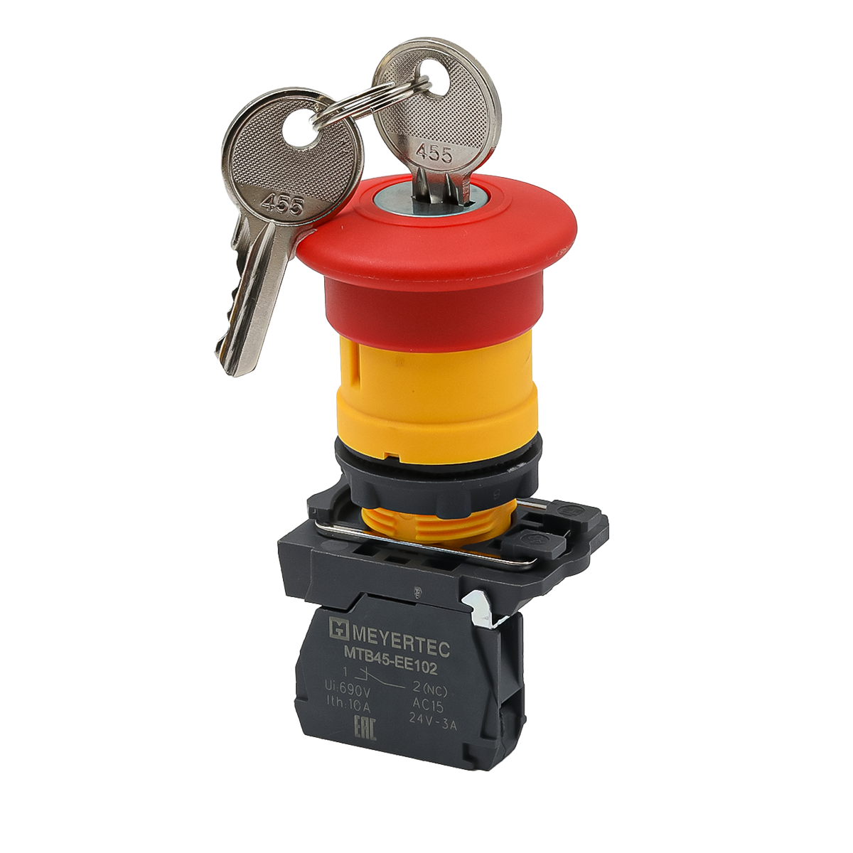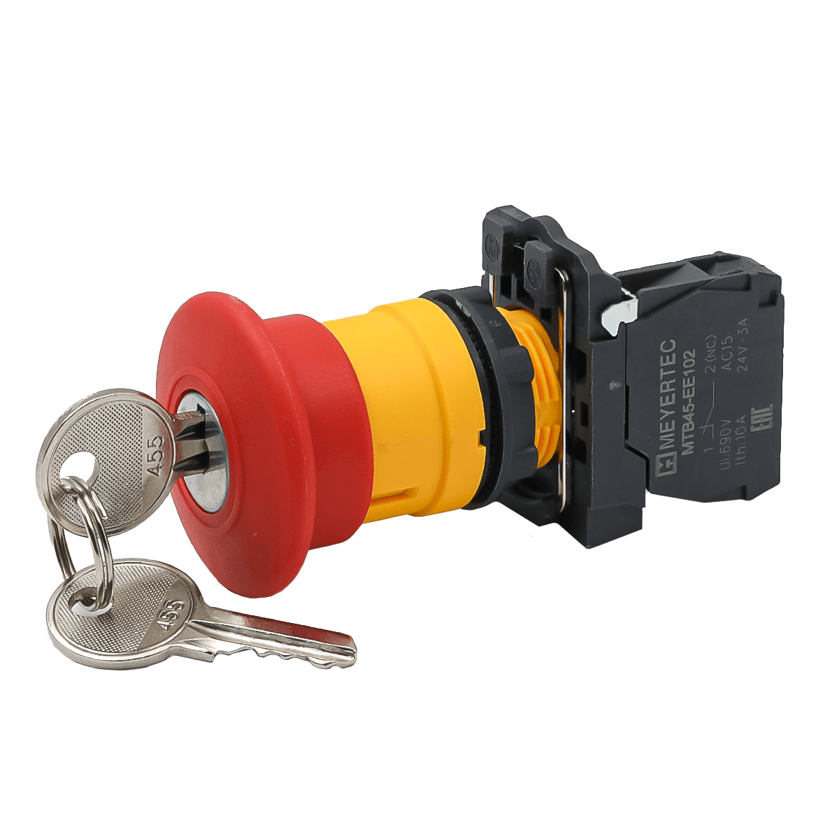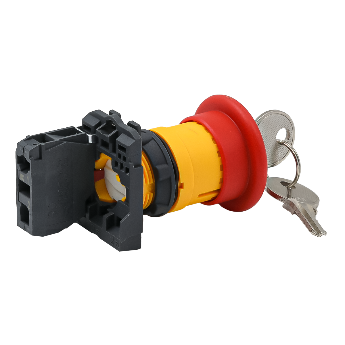 Кнопка грибовидная аварийной остановки с ключом, красная, 40 мм, возврат поворотом с фиксацией, 1NC, IP65, пластик