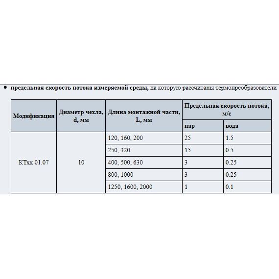 предельная скорость потока измеряемой среды, на которую рассчитаны термопреобразователи
